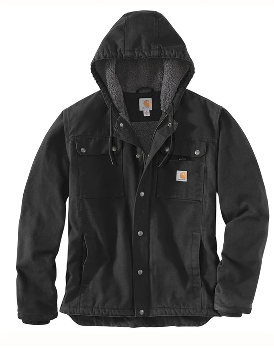 Engineered For midrange warmth in moderately cold conditions, this men's sherpa-lined jacket is built to endure cold, wind, and tough days on the job. Rugged without being rigid, it's made with durable cotton duck and is reinforced with Cordura® at wear points along the cuffs. This warm layer is lined with soft sherpa fleece through the body and hood, with warm quilted nylon through the sleeves. Generous pockets inside and out provide plenty of on-the-go storage options.