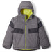 A snow-ready, waterproof-breathable jacket with lightweight insulation for all-day fun. This snow-ready jacket features waterproof breathability, fleece-lined pockets, and warm synthetic insulation. They'll have complete protection with the lined hood, adjustable cuffs, and comfortable chin guard.