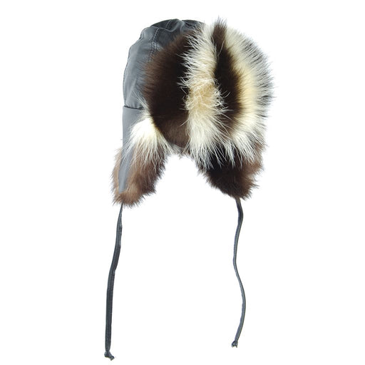Badger Leather and Fur Aviator Hat w/ Black Leather