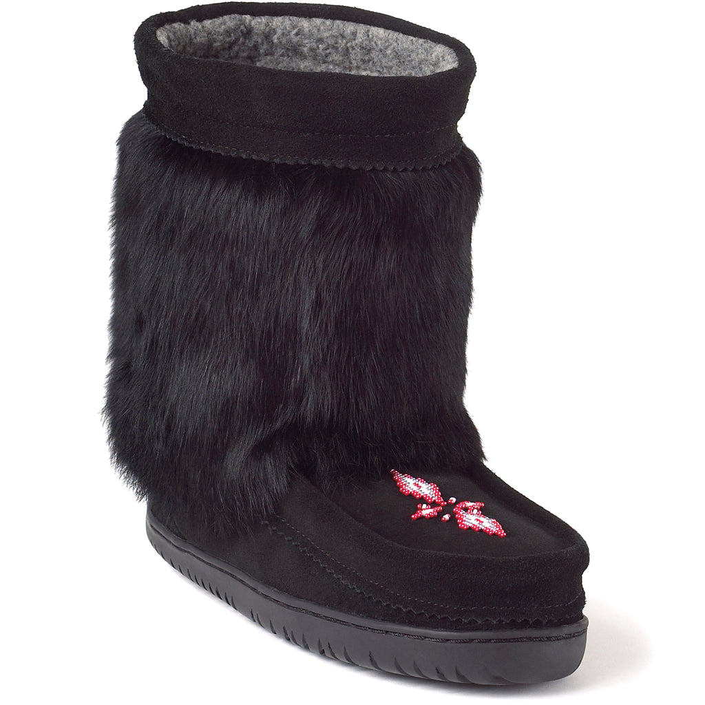 Cloutier Mukluk by Laurentian Chief. 8 Inch Faux Fur Beaded Orlon Crepex black ski sole