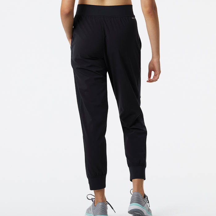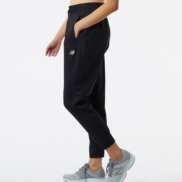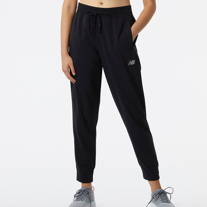Keep comfortable before and after your workout with the New Balance Accelerate Pant. A staple for your sportswear collection, it's made from a lightweight polyknit material and features NB Water Defy water-resistant technology to help keep you dry to and from the track. The fitted design feels snug while allowing a range of motion, and hand pockets keep your keys or phone in easy reach on the go. A knit waistband, side panels and cuffs finish the women's pants off in soft, casual style.