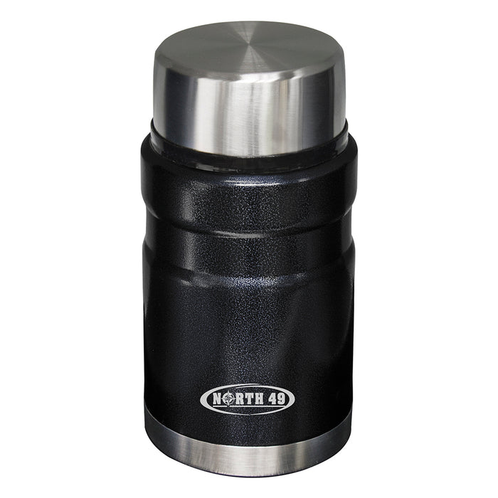 The North 49 Stainless Steel Vacuum Bottle features double wall insulation for superior temperature control. Its hermetic seal and strong construction make it durable, while the large opening allows for easy use and maintenance. The twist stopper prevents leaking, and the lid can even be used as a cup. With a capacity of 24 oz, it's the perfect choice for all your hydration needs.
