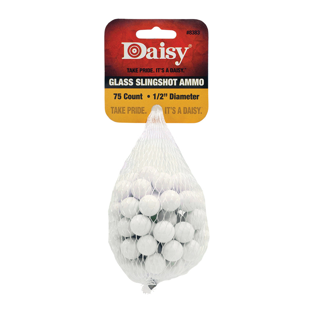 Original price $12.00 - Original price $12.00Original price $12.00$12.00$12.00 - $12.00Current price $12.00Daisy 1/2-inch diameter white glass shot is made for use in all Daisy Slingshots. 75-count bag.