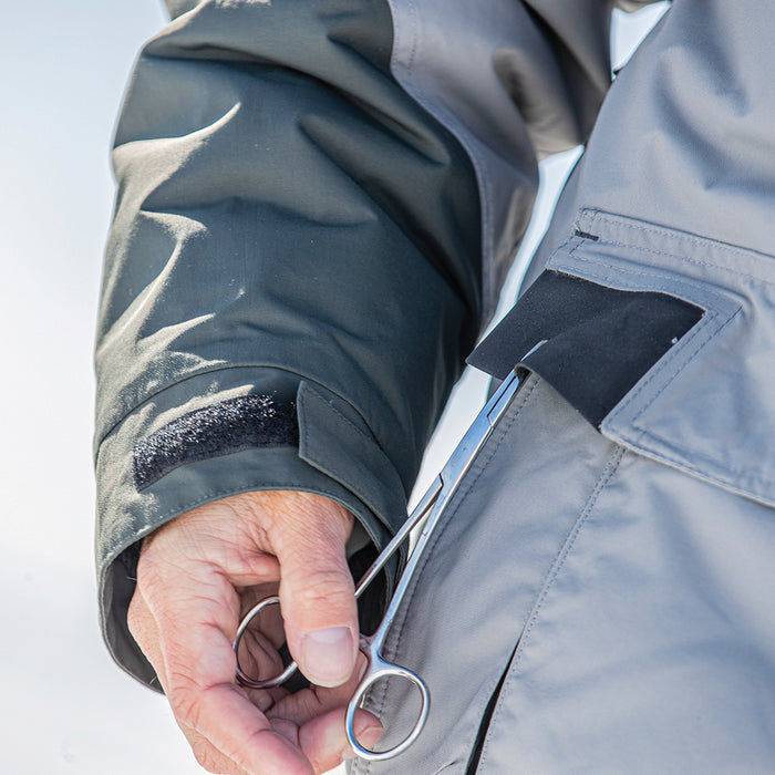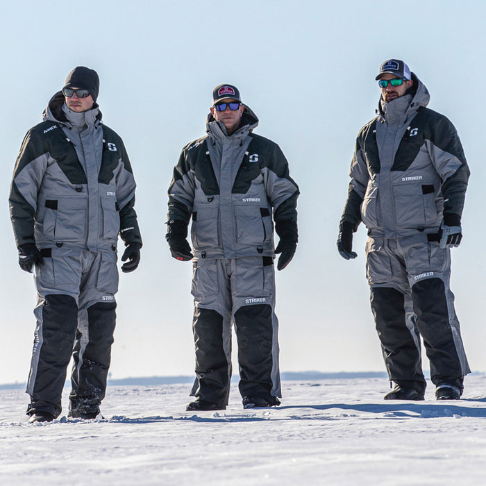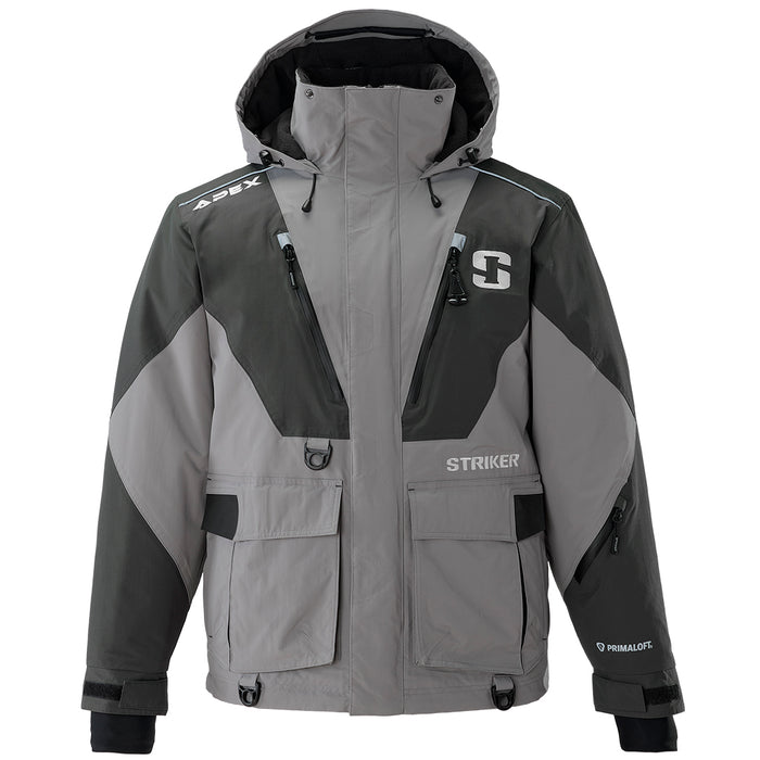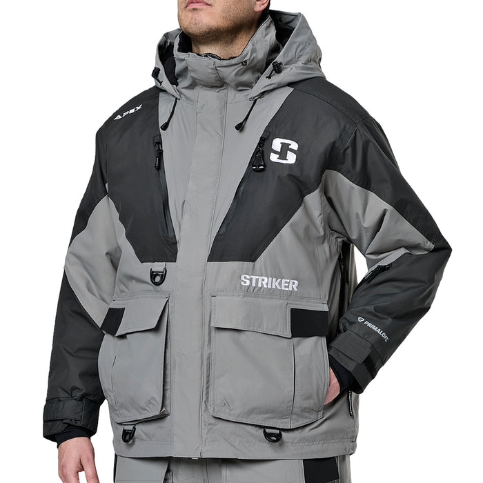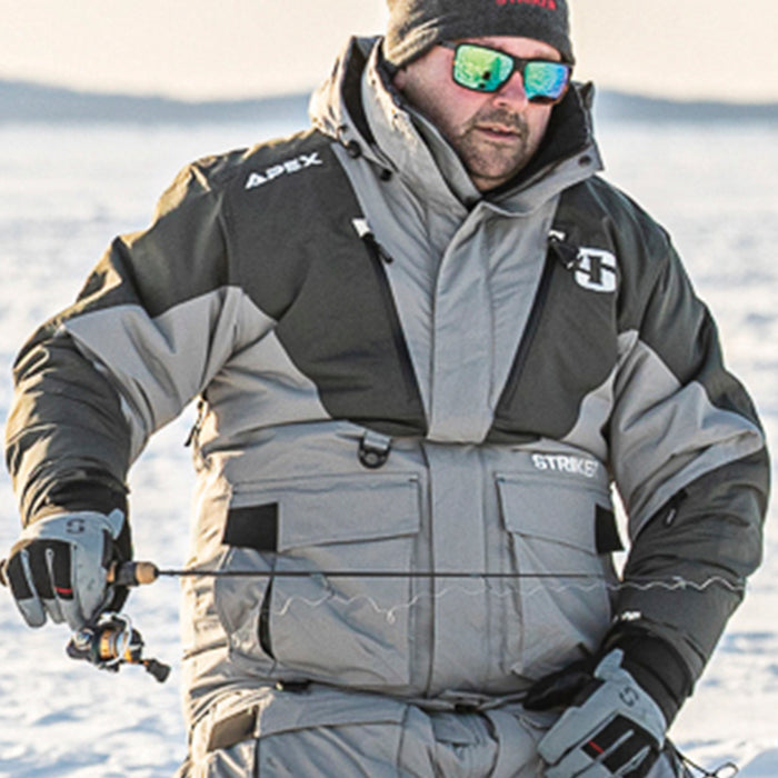 Lighter, warmer, and more comfortable, the Apex Jacket is the most advanced cold-weather fishing system available today. Rest assured the Apex Jacket is loaded with the same Sureflote® Flotation Assist Technology as all our other suits. Features: 320D Nylon Tussor Shell.Hydrapore® Pro Waterproof 10,000mm / Breathable 5,000g.150g Sureflote® Flotation Assistance Technology.80g Primaloft® Gold Insulation with Cross Core™ (80g Body/60g Arms, Hood) Line Cutterz® Zipper Pull Included. Built-in Heat Map Technology.C6-DWR (Durable Water Repellent) Finish Repels Moisture.3-position Adjustable Hood. Oversized Fleece Lined Collar. Magnetic Storm Flap Closure. Fleece Lined Handwarmer Pockets. Top Loading Cargo Pockets with Magnetic Closure. Cross Flow Venting System. Adjustable Hem and Sleeve Cuff. Reflective Elements for Safety.