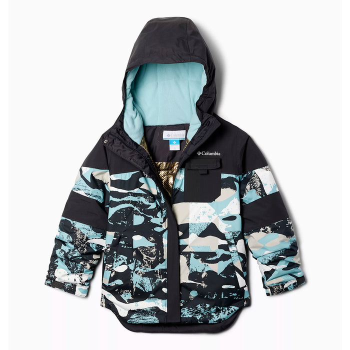 She can use this waterproof, insulated ski jacket next season thanks to cuffs that grow with her. She'll stay comfy thanks to synthetic insulation, a thermal-reflective lining, and waterproof-breathable tech. A helmet-compatible hood, powder skirt, and more are ready for a day on the slopes, plus she'll stand out in the fun geometric print. The Outgrown™ system lets you extend the cuffs next season.