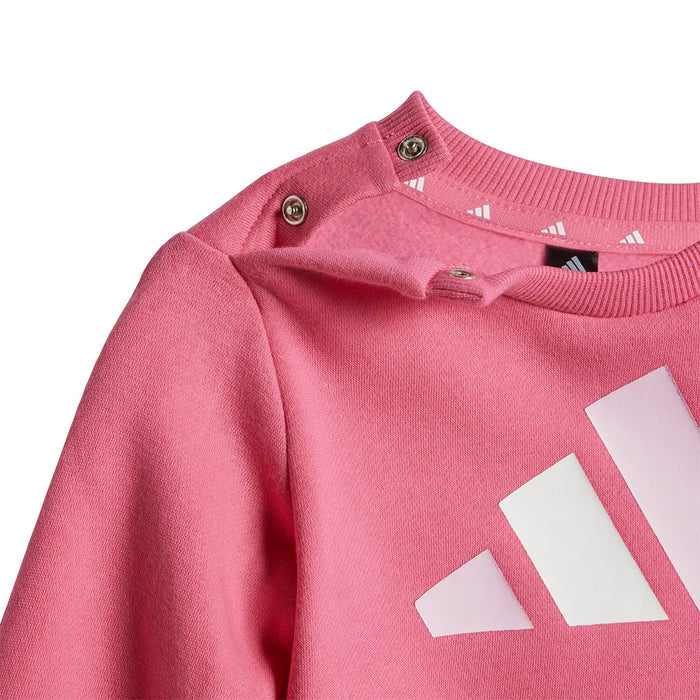 A crewneck and track pants set for the littlest ones. This infants' joggers set from adidas is soft, cosy and made for adventures of all kinds. The versatile style with elastic waistband and ribbed cuffs stays in place through everything from first steps to first sprints. A large 3 Bar Logo keeps the look sporty.