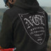 Large Crooks & Castles graphic on the chest and a drawstring hood for adjustable comfort. It includes ribbed cuffs and hem, along with a kangaroo pouch for convenience, all in a sleek black colorway.
