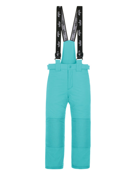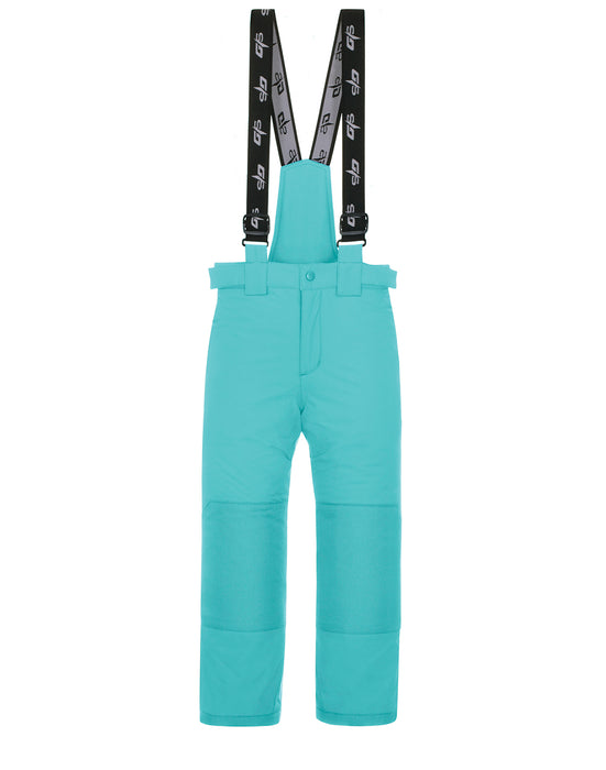 Dobby Taslan, 100% polyester. Water resistant and breathable coating outer shell. Removable and adjustable straps, elastic waistband with adjustable Velcro straps, inside snow gaiter at hem.